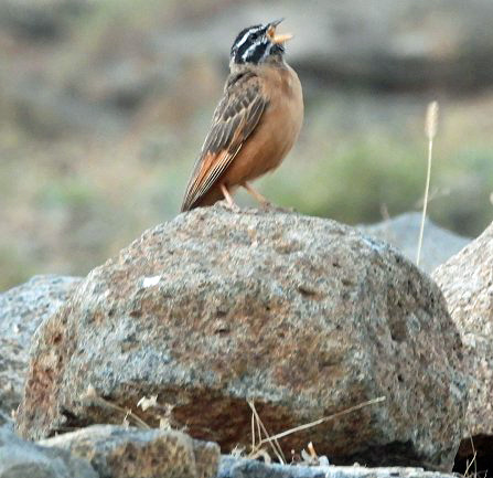 We were there as the sun was setting. There were several of these Cinnamon-breasted Buntings repeatedly singing to the other buntings, announcing their territories while there was still light.