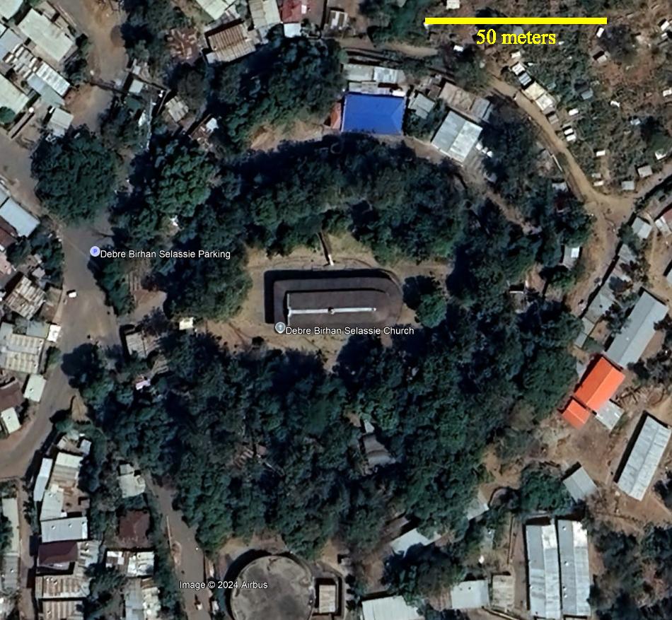 This is an enlarged satellite view of the Debre Birhan Selassie Church which has exquisite paintings inside for teaching Bible stories to illiterate people.