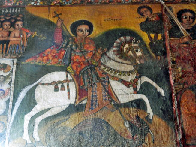St. George killing the dragon is a favorite theme in Ethiopia and elsewhere.