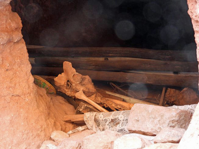 In the side walls of the courtyard some people of the distant past dug chambers for the storage of their bones after their deaths.