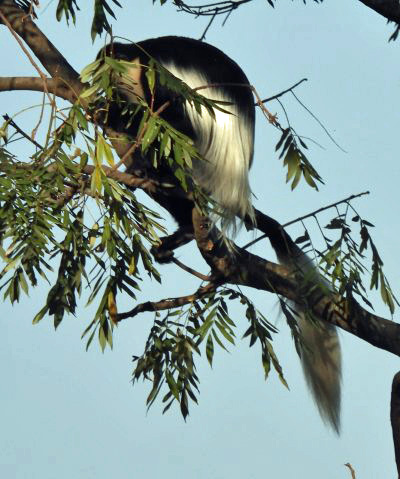 A monkey was in a nearby tree.