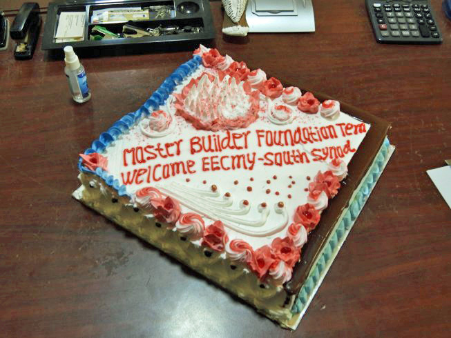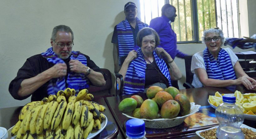 We were served from a special cake and abundant fruit. Each of us was given the cloth drape to make us honorary members of their Synod.