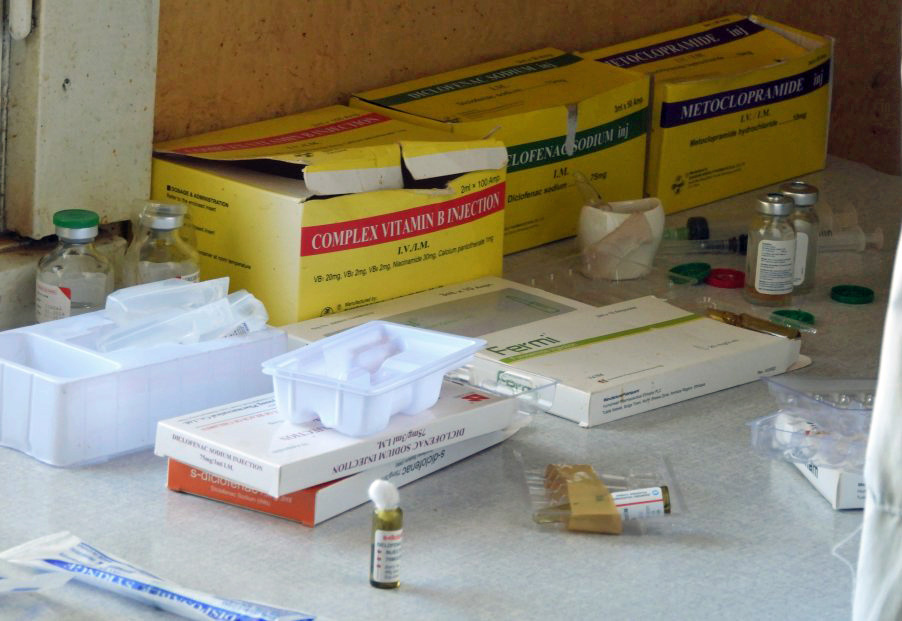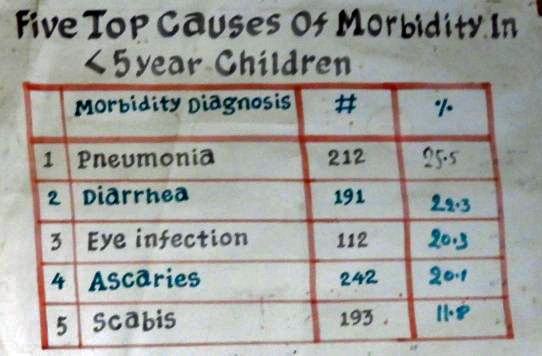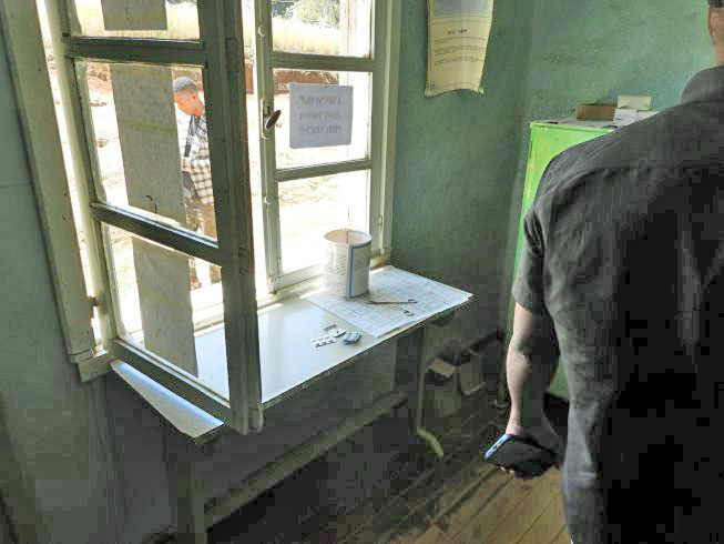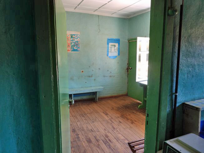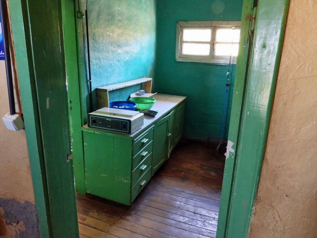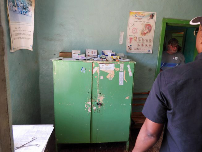 The waiting room. A little more than a dozen patients can be seen daily because of the limited supplies and the only medical person.
