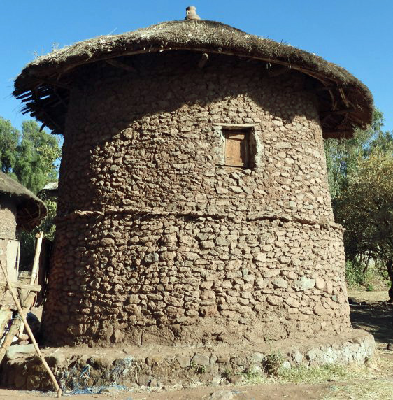 There are many homes of circular design near the stone churches of Lalibela. Their walls are made of stone quarried from the excavation of the church buildings. These have survived for many centuries.