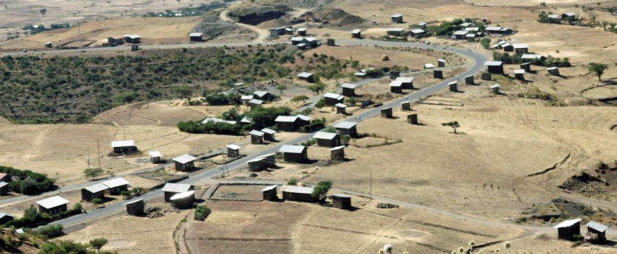 Stick homes and shelters with metal roofs, near Lalibela.
