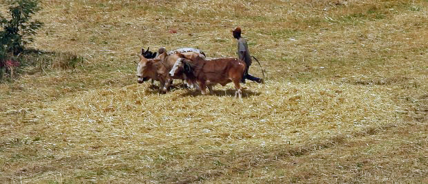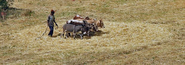These photos show animals walking in a circle, crushing new straw left over from grain harvesting. We also saw donkey carts loaded with new straw.