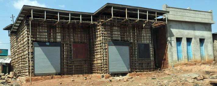 However, the Ethiopians have a design flaw in these stick homes and buildings. The vertical sticks of the walls are somewhat braced by only horizontal sticks of the same kind. No buildings use any diagonal sticks to keep the walls upright. Older building walls can be seen tilted as a result.
